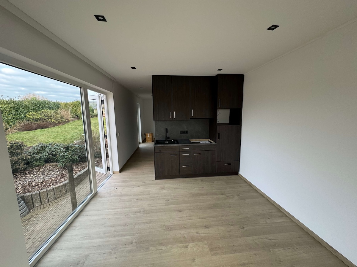 - Open leefruimte met ingerichte keuken (inclusief inbouwkoelkast, 4-pits kookplaat en inbouwmicrogolf)